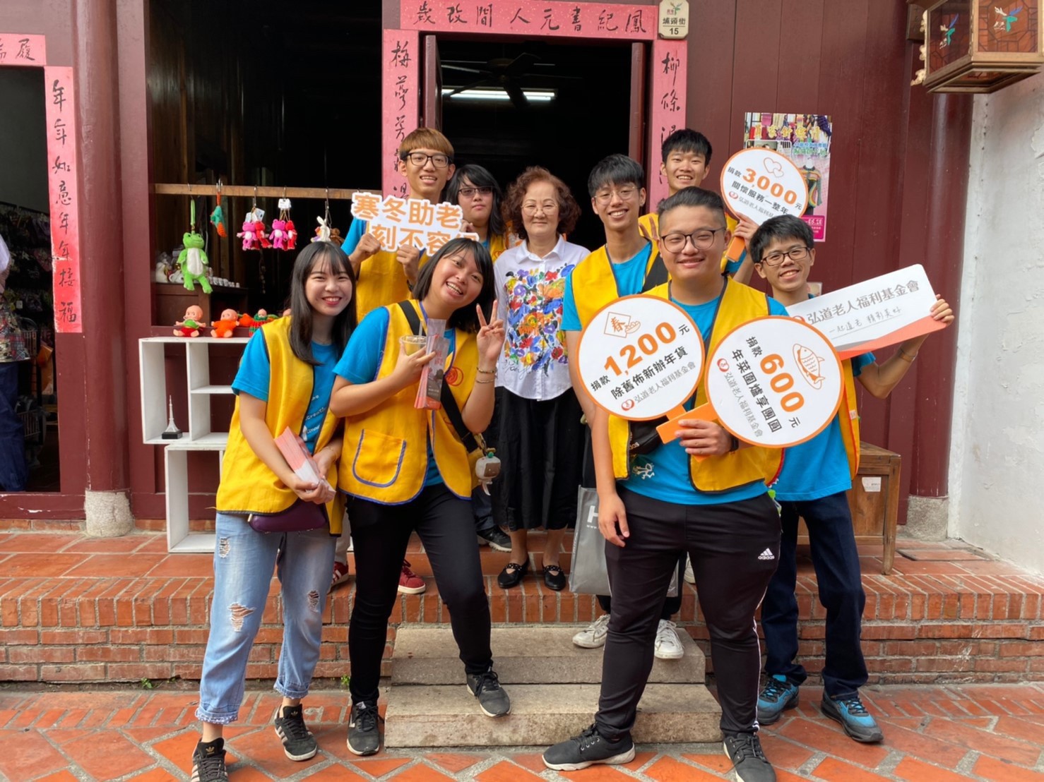 大葉休閒系師生街頭募款 讓弘道獨居阿公阿嬤過好年