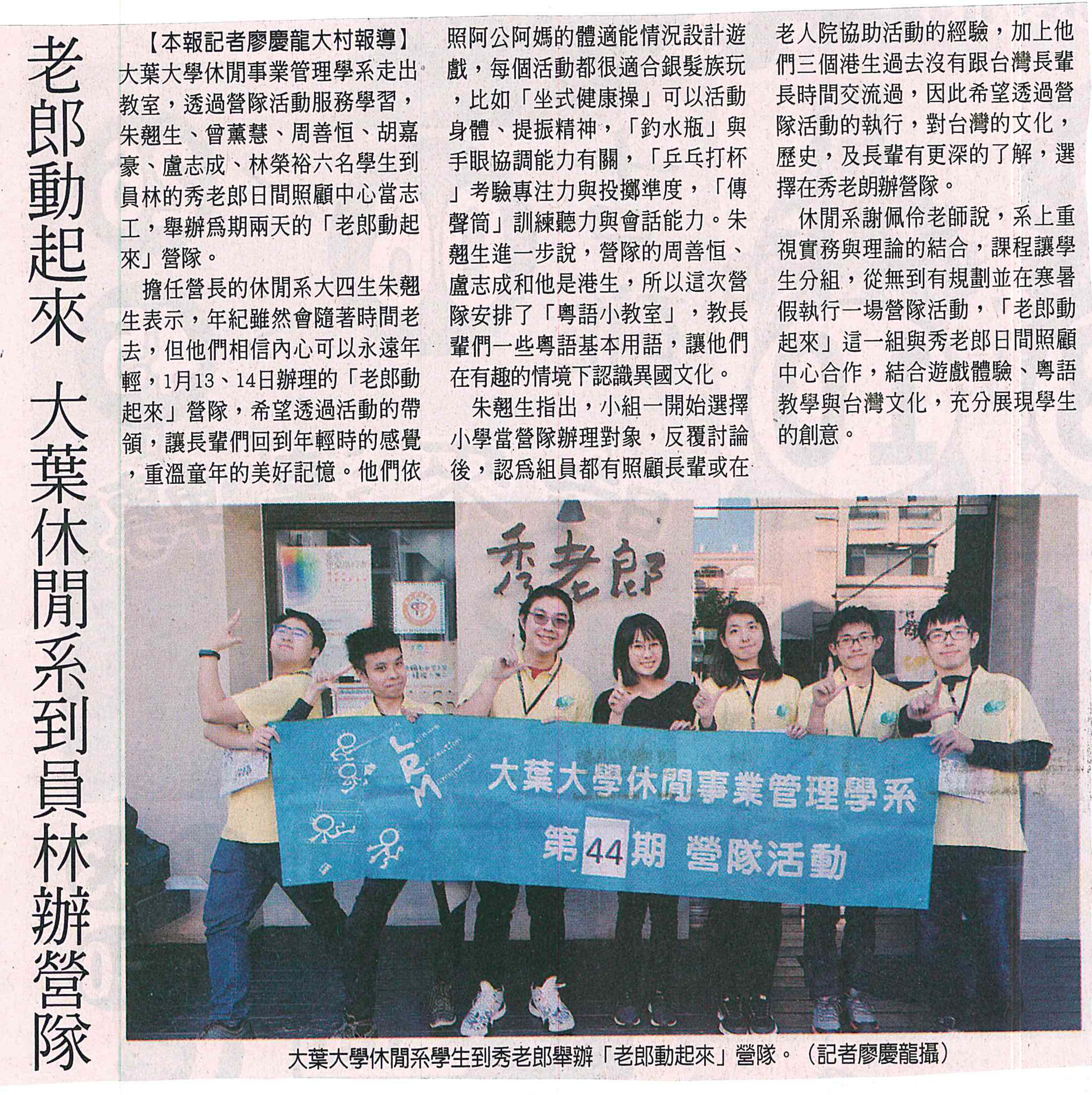 老郎動起來 大葉休閒系到員林辦營隊