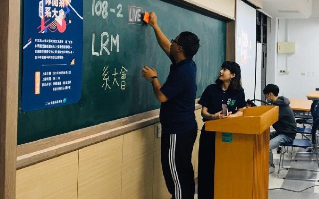休閒系系學會會長、大三的蔡子奕表示,因應新冠肺炎疫情,減少多人聚會,系學會將每學期召開的系大會改成線上舉辦的形式,把教室變成攝影棚,由江文瑜串場主持,並預錄好影片,讓大家可以在宿舍觀看影片。影片一方面邀請施建彬副主任、謝佩伶老師、林擎天老師宣導學習注意事項,老師們也不忘提醒大家要注意自身健康,量體溫、戴口罩、勤洗手,保護自己保護別人,另一方面,邀請正在美國留學的大四生葉秉珩和林思吟,和學弟妹分享在美國的生活與學習情況。