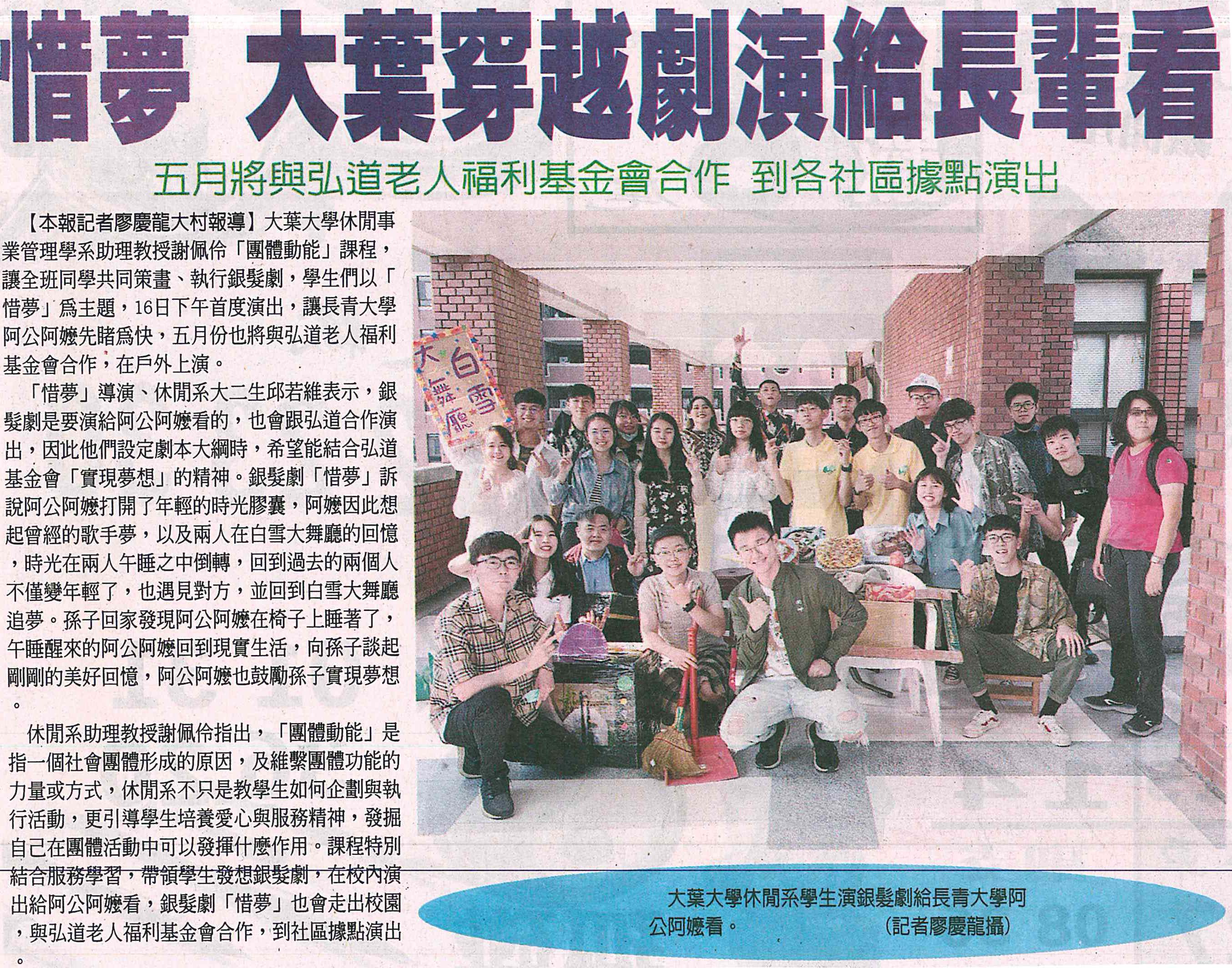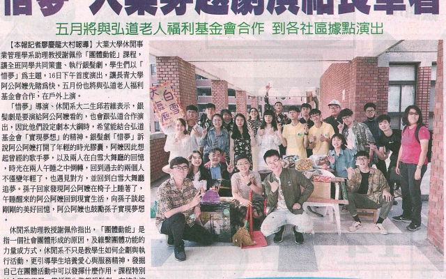 下一則:大葉大學休閒系學生戲說阿公阿嬤故事