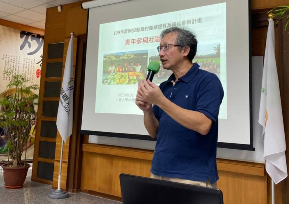 「109年度南投縣農村產業提昇及青年參與計畫」為協助青年參與社區事務、農村產業、社區環境營造、社區行銷宣傳,安排一系列工作坊,「青年參與社區」場次邀請大葉大學休閒事業管理學系助理教授林擎天,分享他長期輔導農村再生及社區營造的經驗。