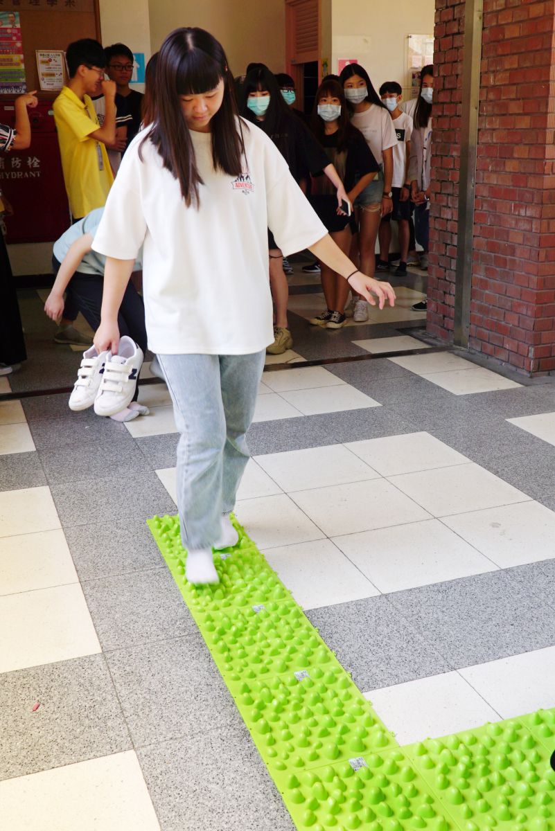 系學會長商豪說,迎新代表給新生的祝福,第一關卡走過健康步道,代表未來有許多困難要克服,但有夥伴相互扶持。第二關卡將吸水的海綿擰乾,讓自己歸零,重新學習新知。第三關卡敲響有蔥的鑼聲,透過青蔥和鳴鑼追求聰明。