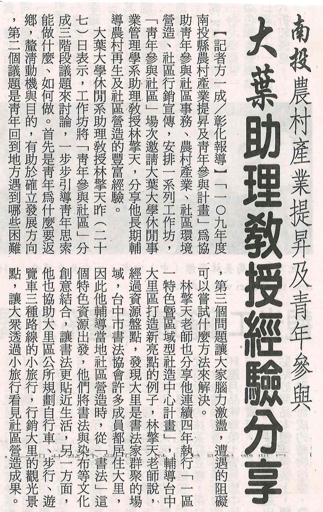南投農村產業提升及青年參與 大葉助理教授經驗分享